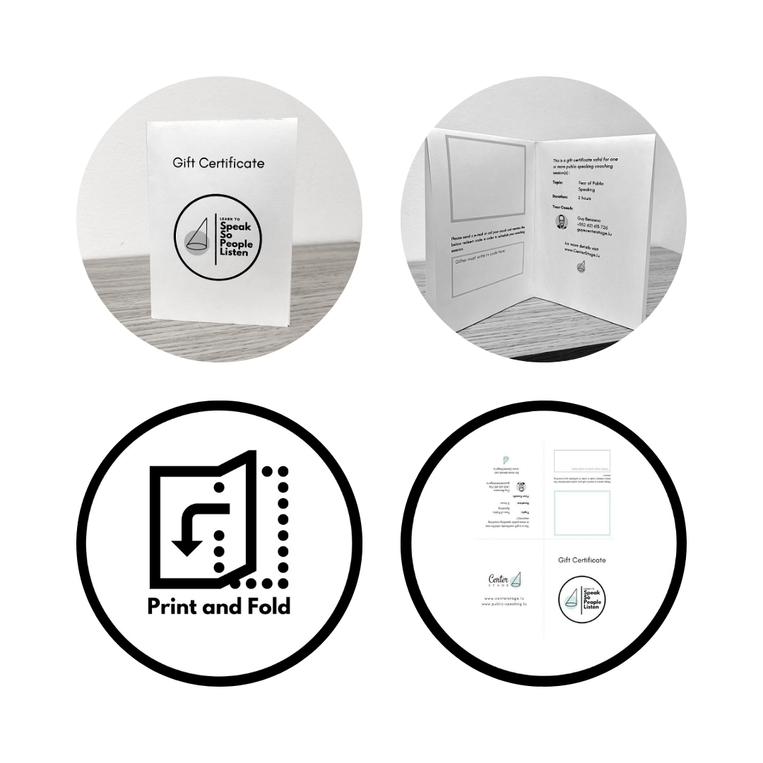 A gift card for a public speaking coaching session.